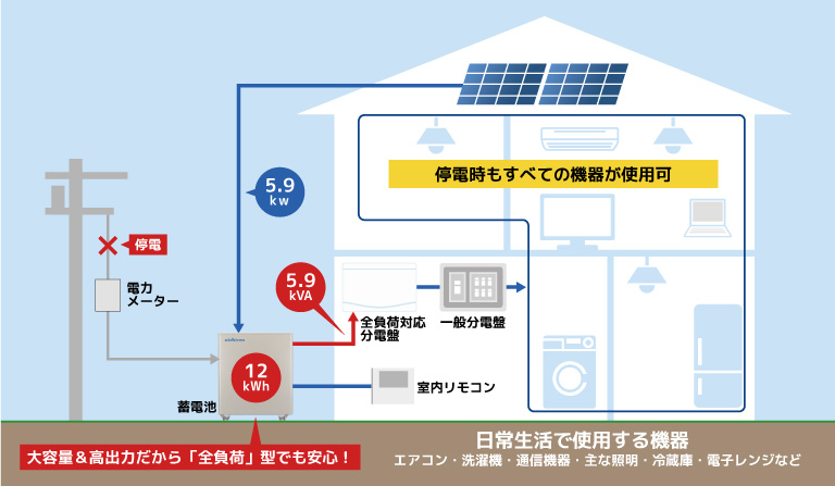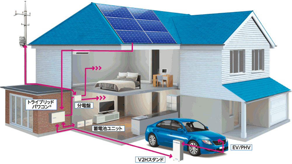 弊社は「より良い環境空間の構築」として蓄電システム事業を推進してます。 因みに蓄電システムとは 「 ハイブット&単体型 」& 「トライブリット型」 災害時、特に台風による停電時に蓄電池からの電気を全ての部屋と熱帯 夜には欠かせないクーラーへ送電出来るので、停電時でも平常どおりに 電気が使えるのが蓄電システムです。 更にEV-PHV車への充電も可能になります。 蓄電池への充電は直接、電力会社から電気を供給する方法と太陽光バネ ルがあれば日中の太陽光で蓄電池へ充電が出来るのです。 弊社は国内シェアNo,1の安心安全なニチコン株式会社様の製品を取り扱 っています。 お気軽にお問合せください。 ・一般家庭、一体型蓄電システムがわかるカタログを掲載してます。 よろしければ、ご覧ください。 弊社はニチコン株式会社様の施工研修課程を修了していますので、安心 してお任せください。 |